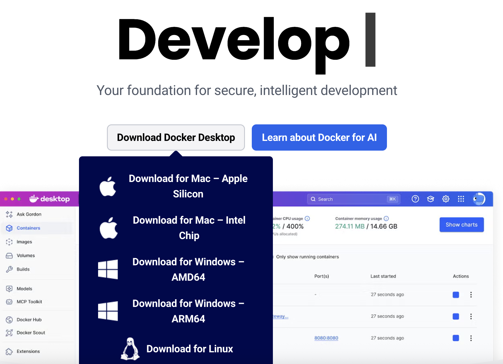 가장 먼저 'Docker'라는 프로그램을 설치합니다. Docker를 설치하면 n8n 같은 프로그램을 내 컴퓨터의 다른 부분과 분리된 독립적인 공간에 설치하고 실행할 수 있습니다.