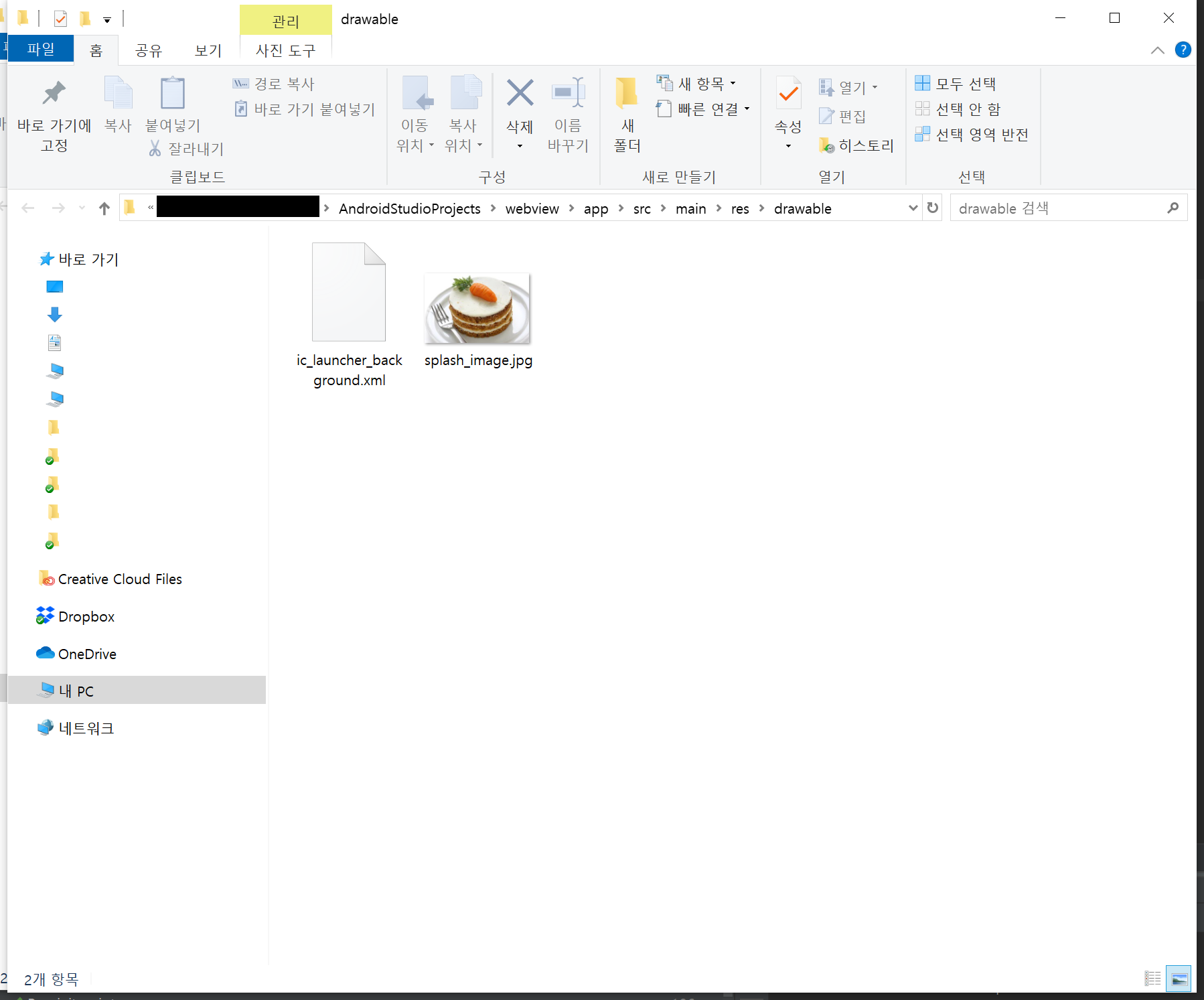 app > res > drawable 파일 우클릭 > Show in Explorer 로 해당 경로를 창으로 열어주고