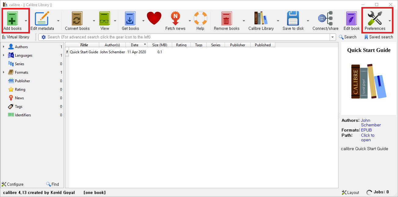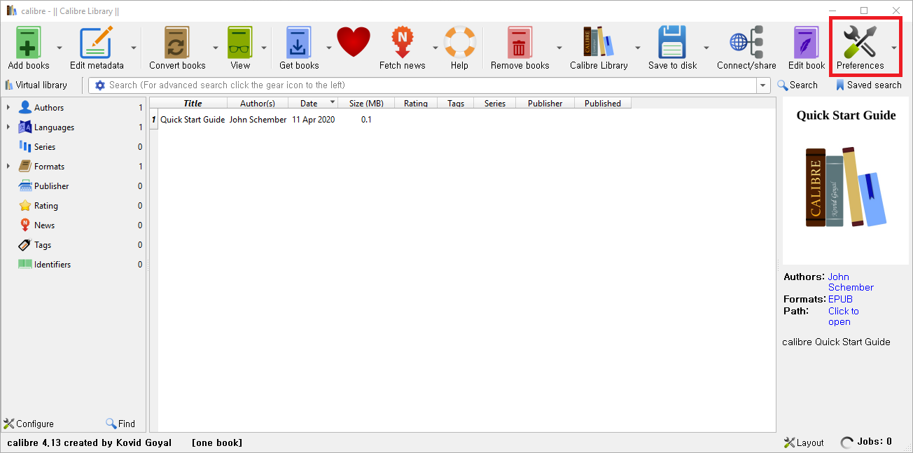 1. calibre 실행 후 Preferences 클릭
