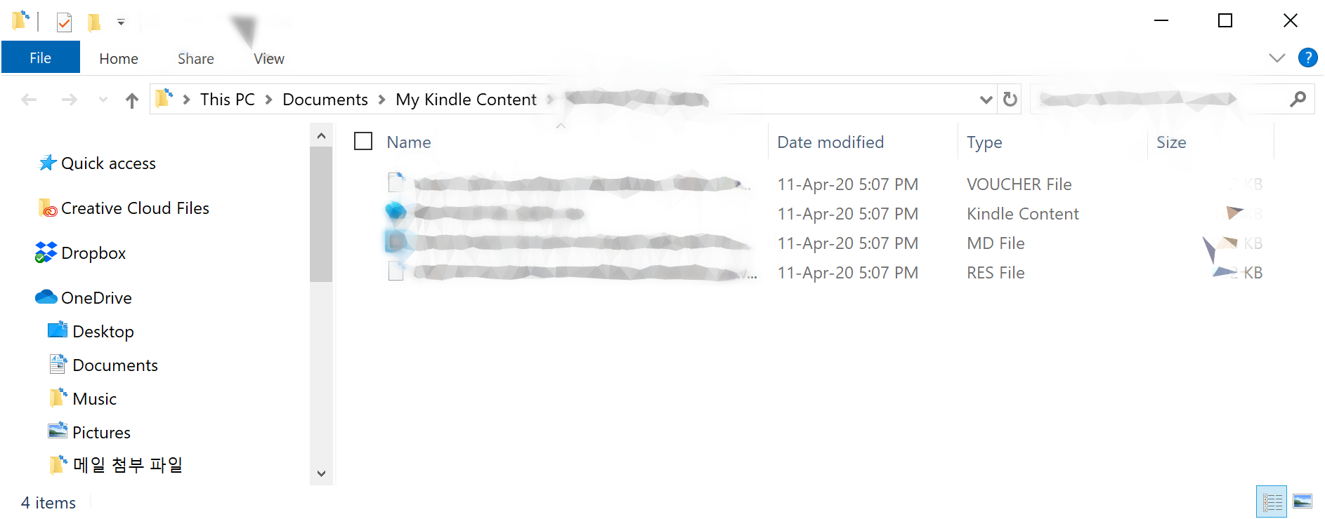 그럼 이제 내 문서 > My Kindle Content 에 이상한 이름의 AZW 파일이 생성된 것을 확인할 수 있습니다.
