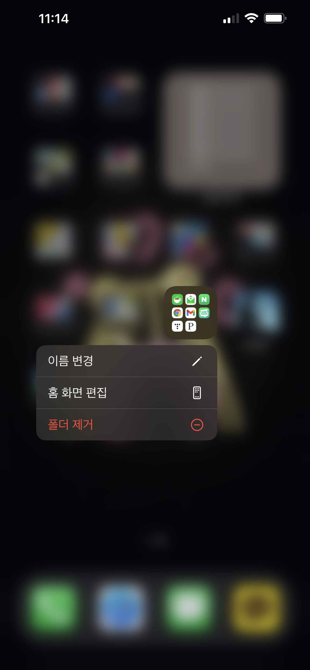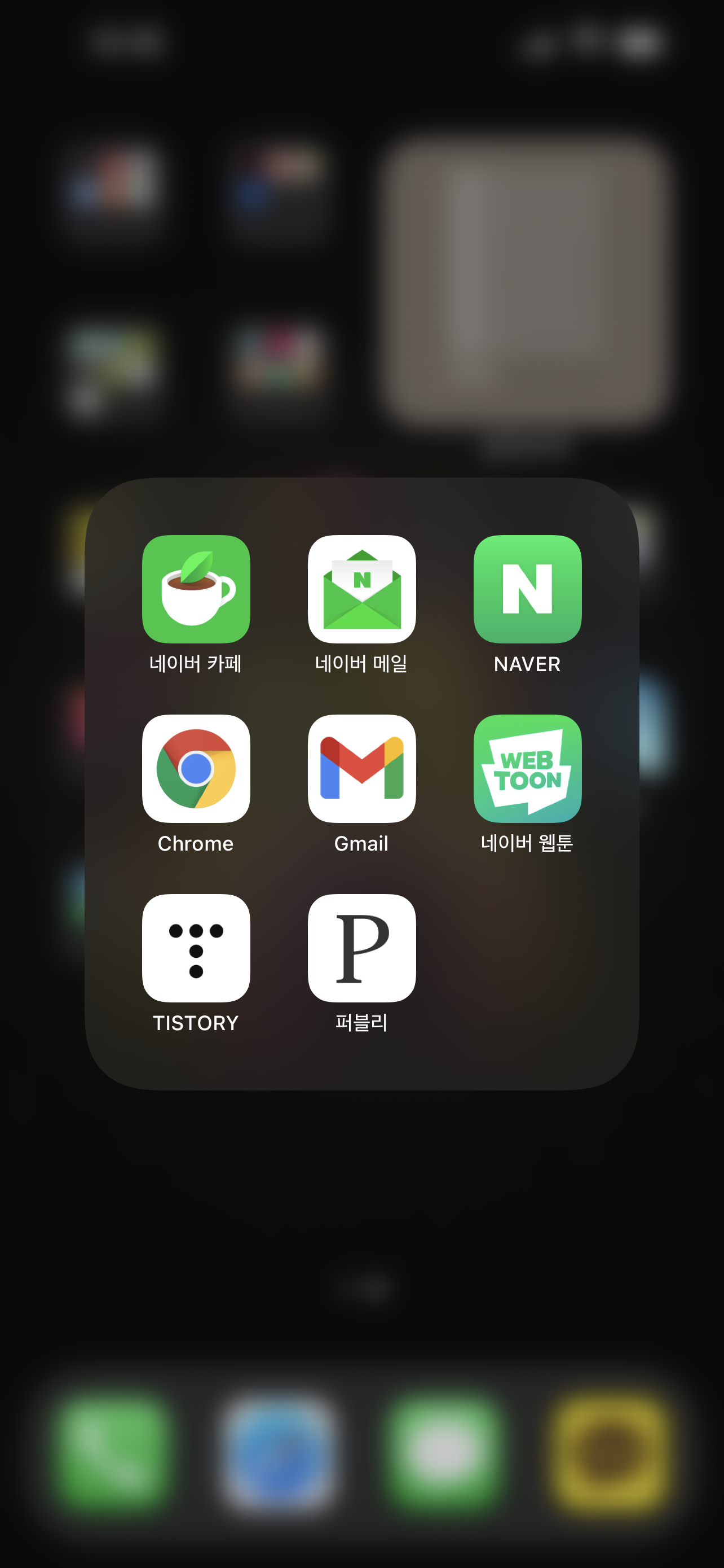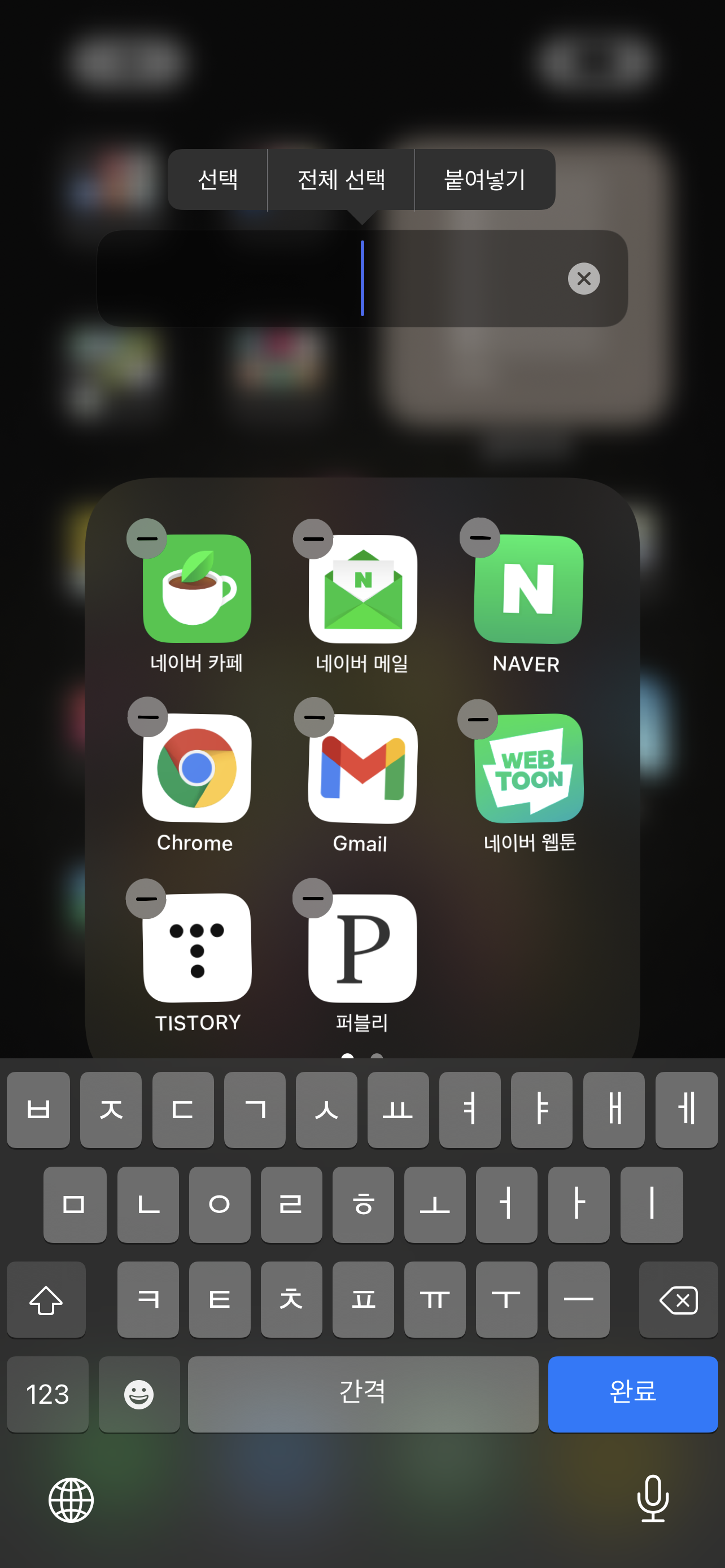 아이폰은 바탕화면에 노출되는 폴더명을 공백으로 둘 수 없습니다.