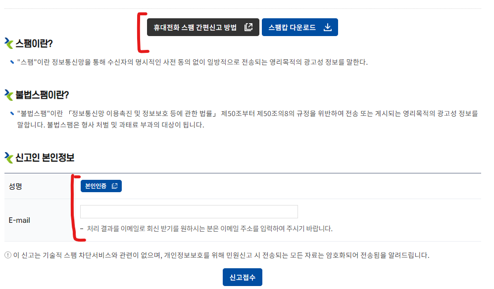 또한 자신이 신고한 불법 광고/스팸에 대한 처리 결과를 확인할 수 있습니다.