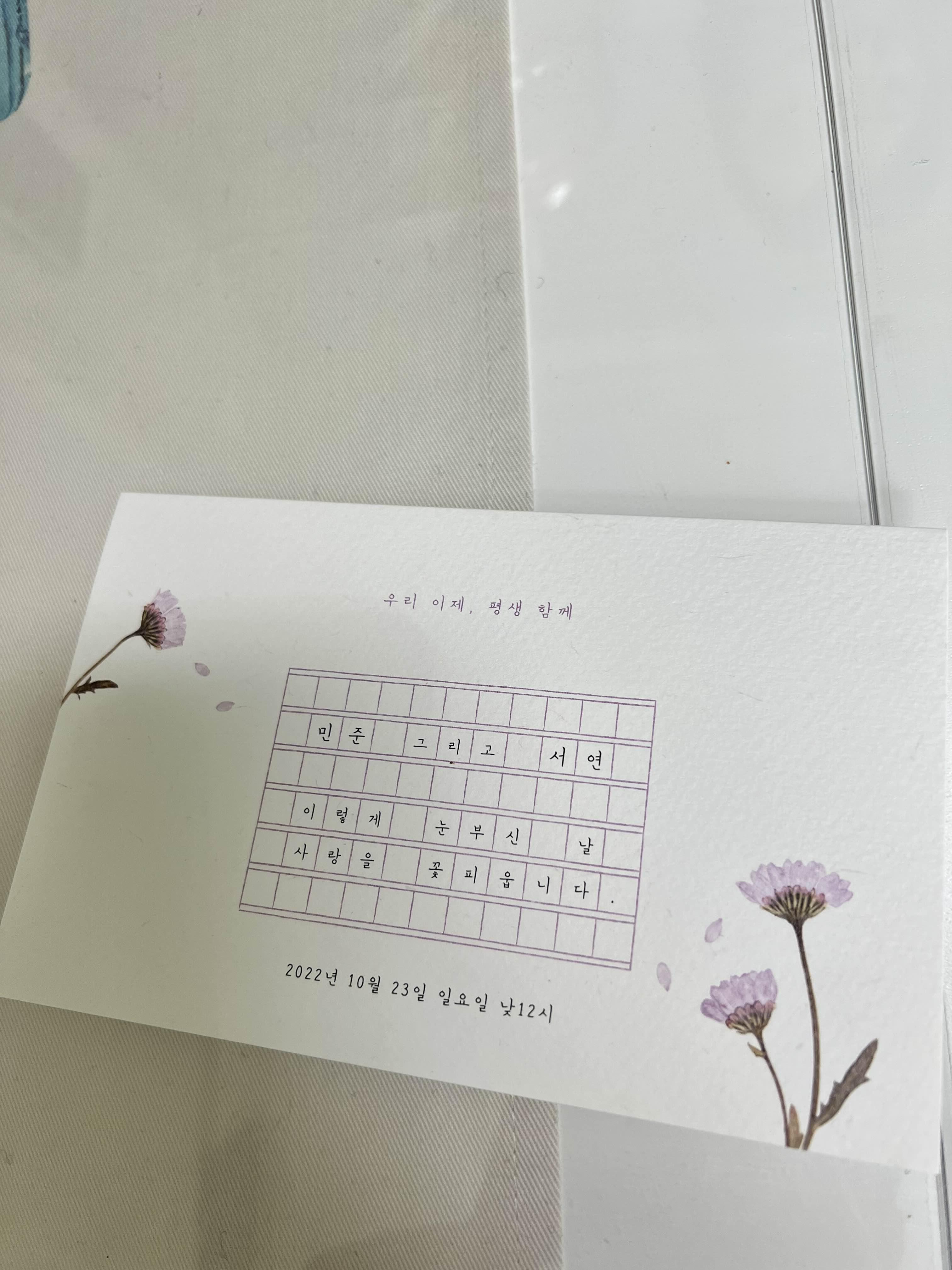 그런 만큼 저희의 무드가 담기면서 누가 봐도 예쁘게 메시지를 전달할 수 있는 청첩장을 선택하고 싶었습니다.