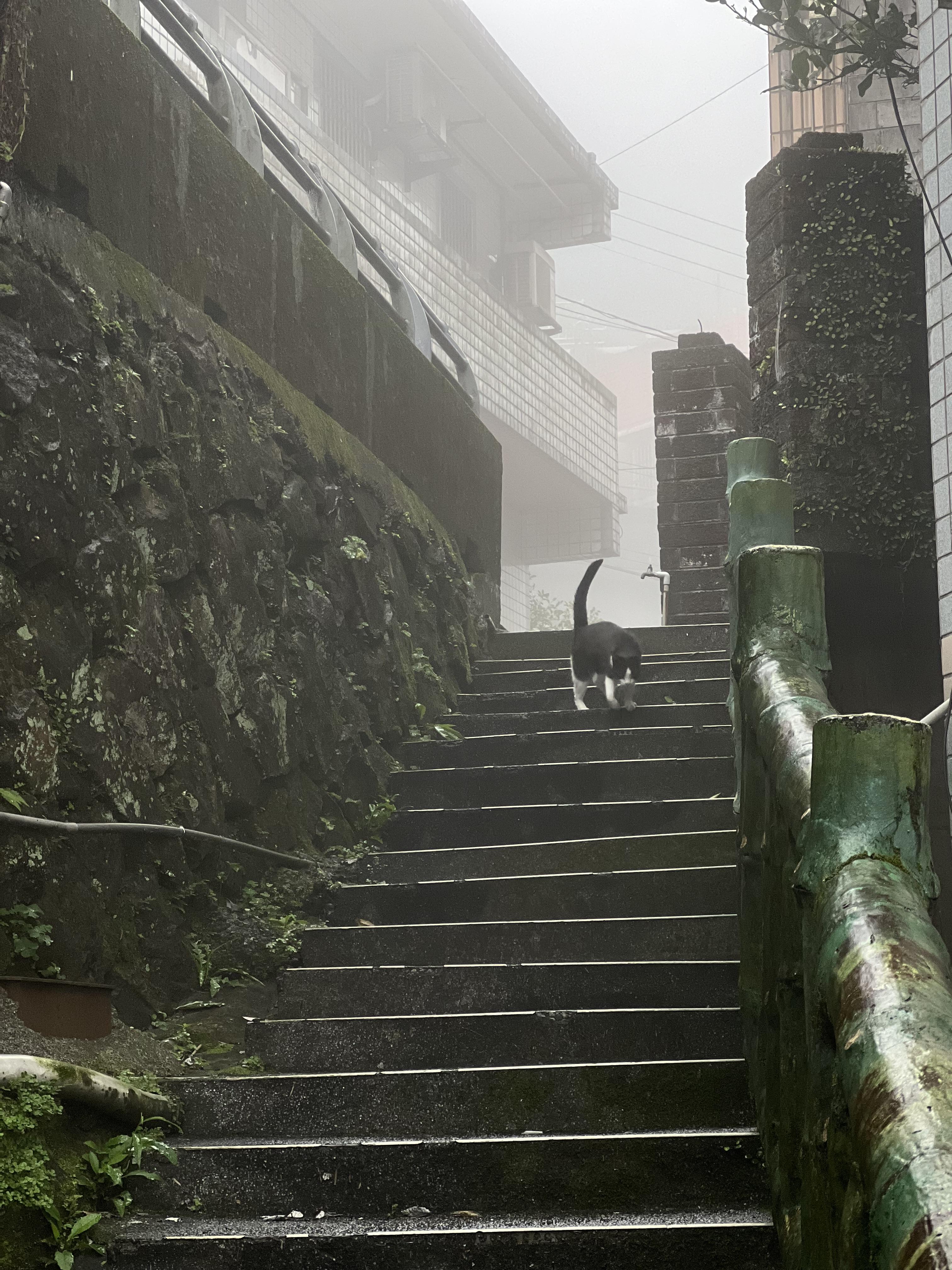 조식을 먹으러 가는 길에 고양이를 한 마리 만났는데